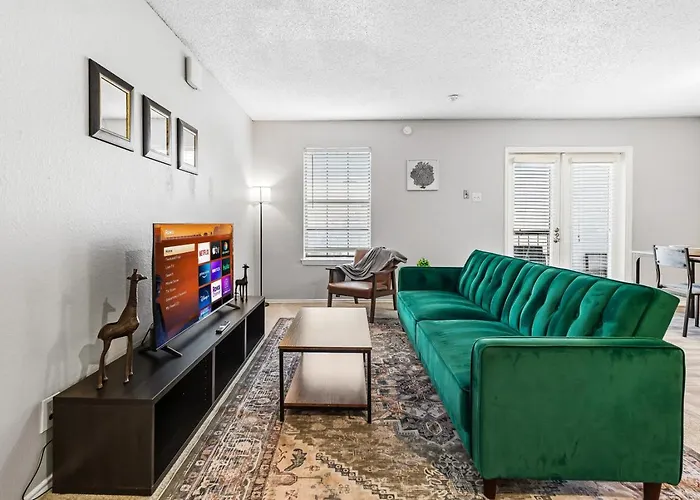 O Trendy 2Br Apartment With Pool And Gym Access Arlington está localizado a aproximadamente 20 minutes a pé de Bob Cooke Park e a uma distância de 4.8 km de Estádio AT&T. Os hóspedes podem relaxar na piscina privada antes de dar um mergulho refrescante.